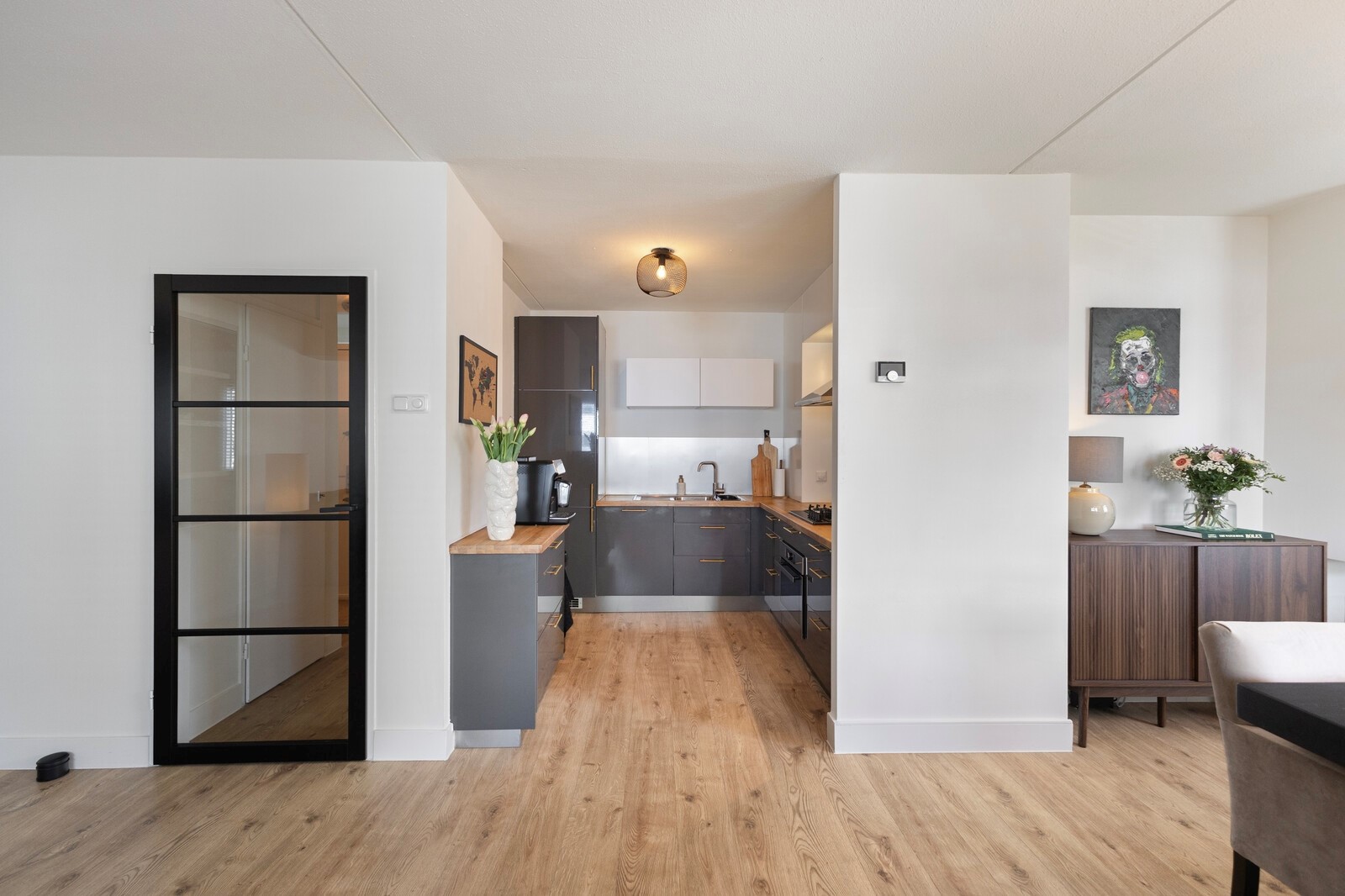 Wij mogen jou aanbieden dit superleuke en verrassend lichte hoekappartement, gelegen op de eerste etage. Dankzij de hoekligging profiteer je hier van extra raampartijen, wat zorgt voor een prachtige lichtinval en een vrij en prettig uitzicht. Het appartement beschikt over een uitgebouwde woonkamer die heerlijk ruim aanvoelt. De nette laminaatvloer en strak gestucte wanden, die door het gehele appartement zijn doorgevoerd, geven het geheel een verzorgde en moderne uitstraling. De open keuken is praktisch ingericht en van alle gemakken voorzien, met diverse inbouwapparatuur die het koken comfortabel en efficiënt maken.