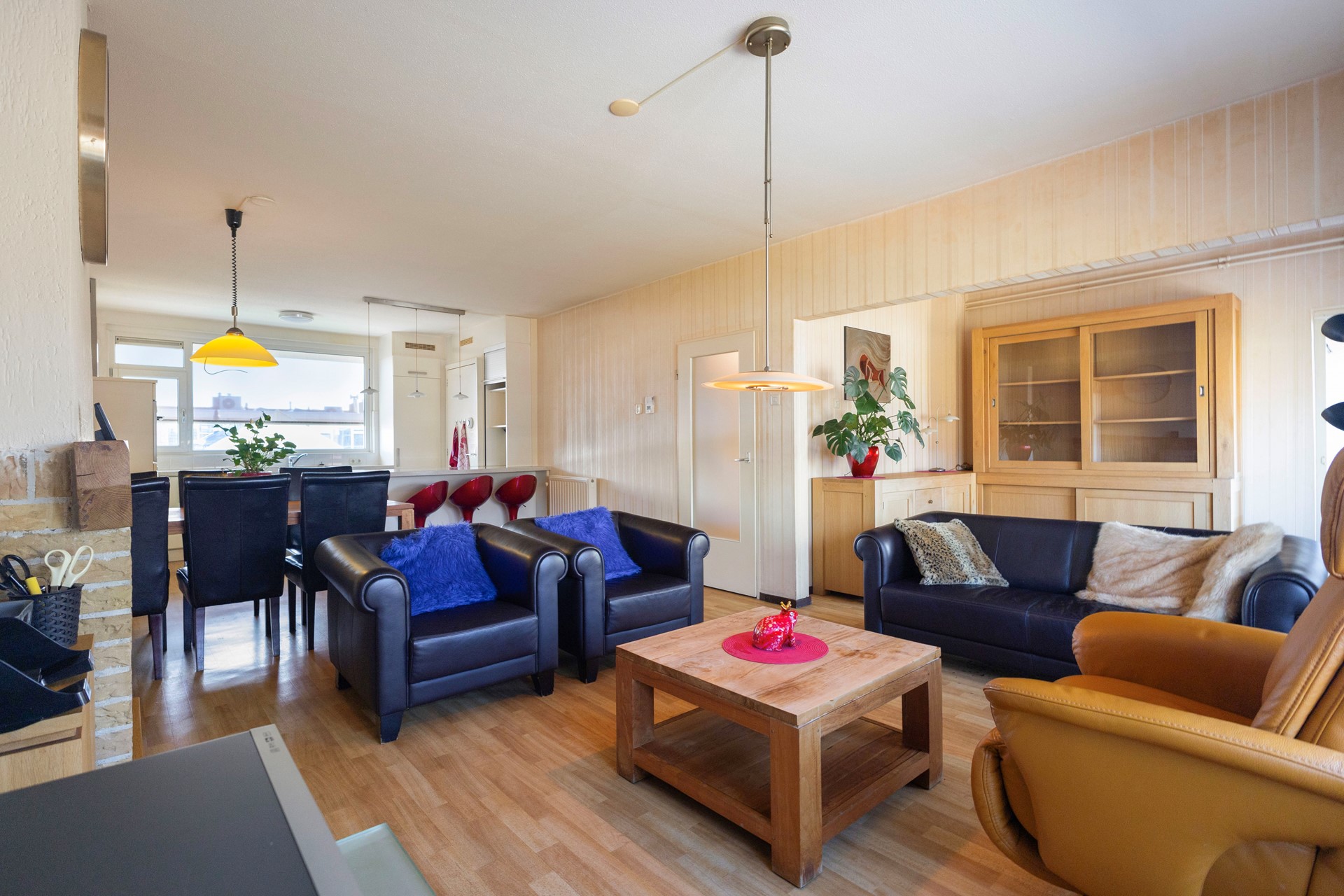 Het appartement biedt ruim 90m2 aan bruikbaar woonoppervlak en is oorspronkelijk opgeleverd met 3 slaapkamers. Een van de slaapkamers is door de laatste eigenaar bij de woonkamer betrokken waardoor hier een riante L-vormige living is ontstaan met fraaie open keuken, geplaatst in een U opstelling met ontbijtbar en voorzien van al het gewenste apparatuur. Blijven er 2 ruime slaapkamers over, één aan de galerijkant gelegen en een tweede aan het inpandige balkon die vanaf de woonkamer is te bereiken. De hal biedt toegang tot alle vertrekken waaronder ook de geheel betegelde douche en separaat het toilet. Tevens zijn er diverse inbouwkasten waaronder een witgoedkast.