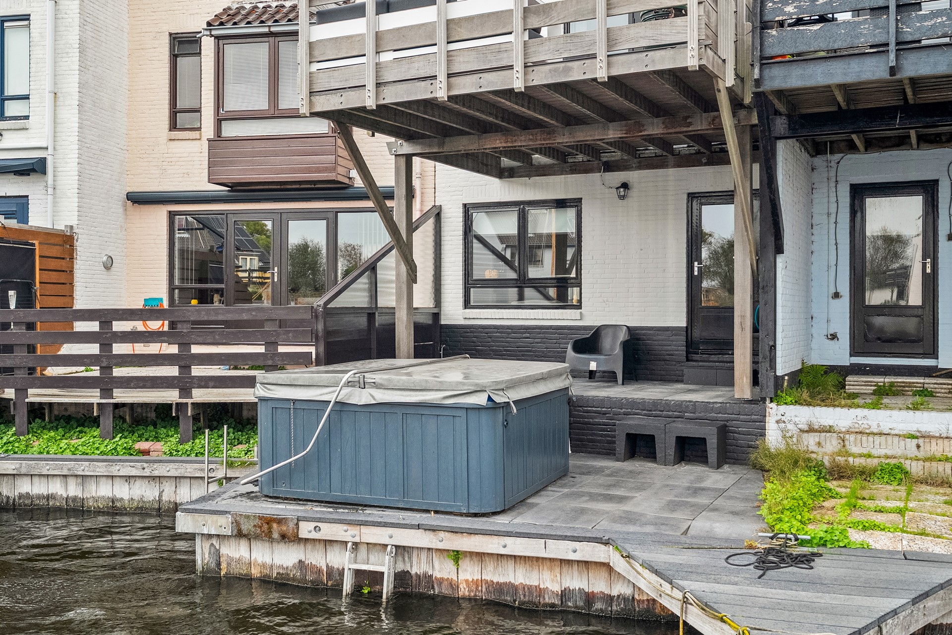 Wonen aan het water geeft je het gevoel van vrijheid en recreatie, ieder jaargetijde biedt een ander uitzicht en beleving. Het terras op de begane grond en op de eerste verdieping helpt daarbij. Een geweldige zonligging. Zuidwest. Kijkend over het water.