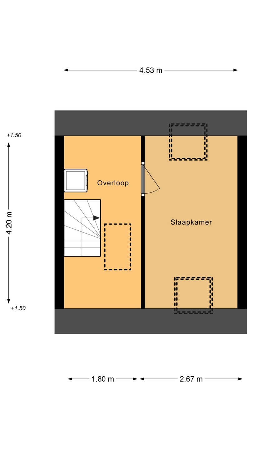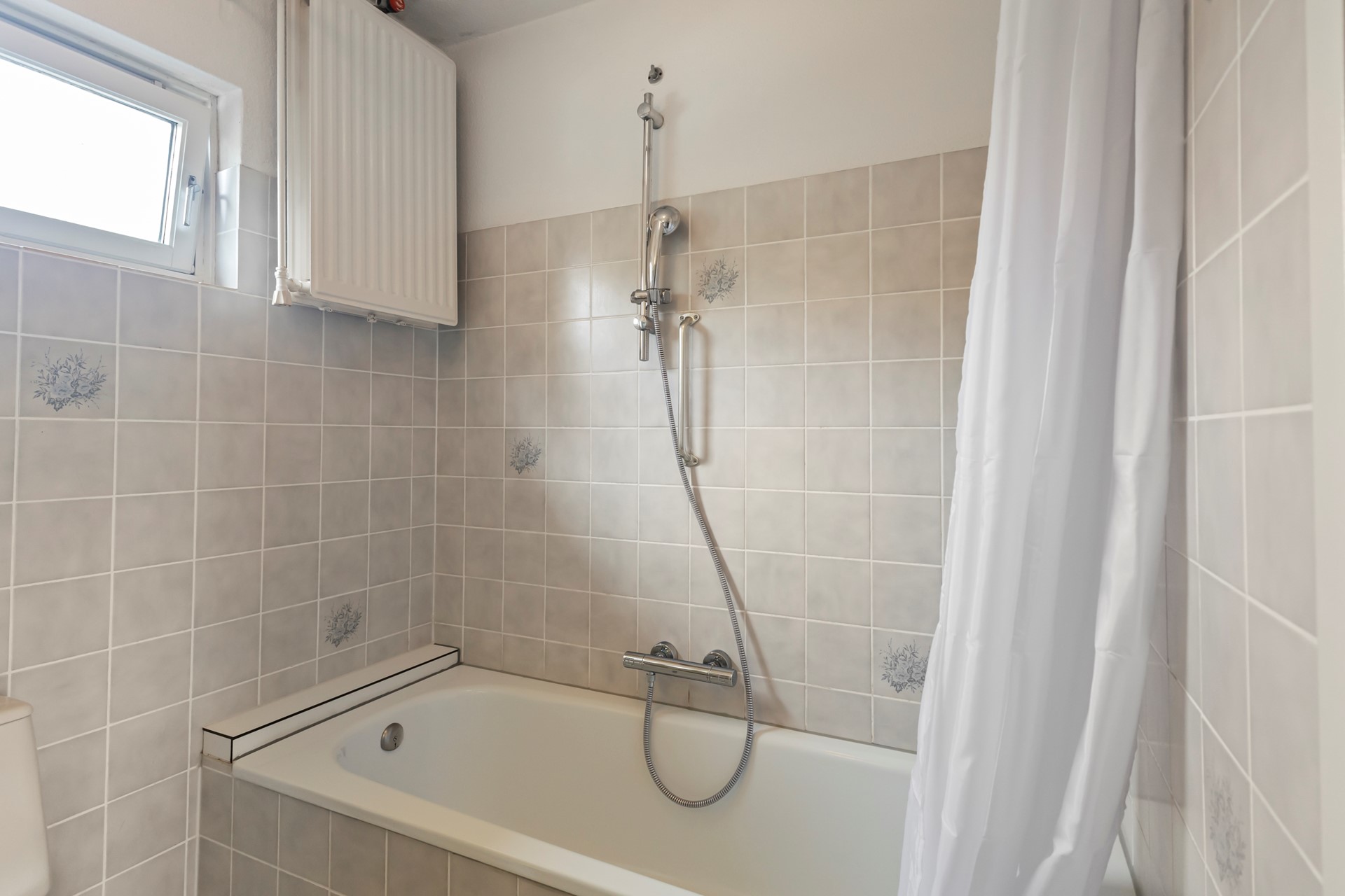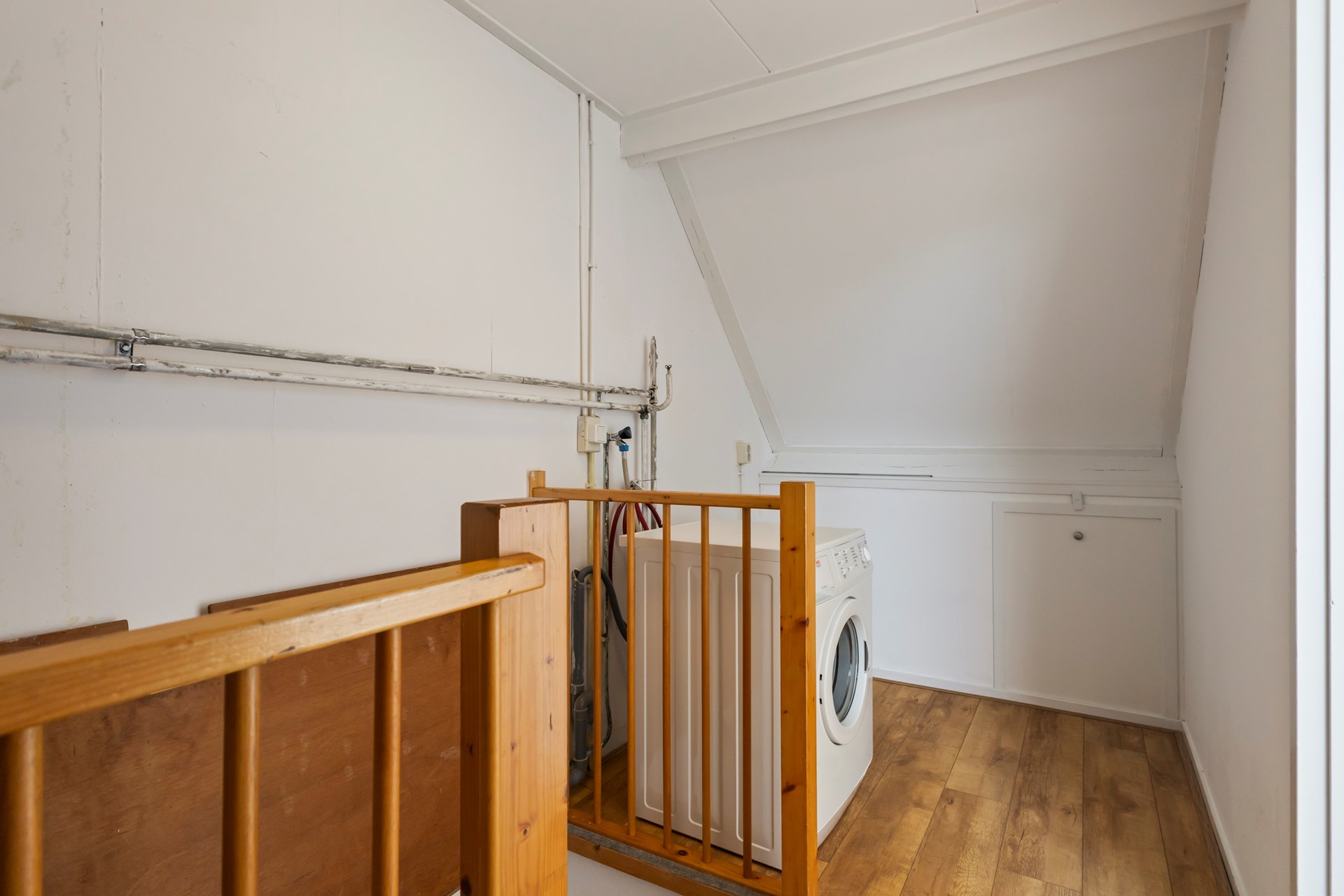 De tweede verdieping biedt een royale overloop met de opstelplaats voor de CV-ketel en aansluitingen voor het witgoed. Hier bevindt zich ook een ruime derde slaapkamer, keurig afgewerkt en voorzien van dakramen aan beide zijden. Zowel de voorzolder als de slaapkamer beschikken over praktische bergruimte achter de knieschotten. Bovendien is er boven deze verdieping nog een vliering aanwezig, ideaal voor extra opslag.