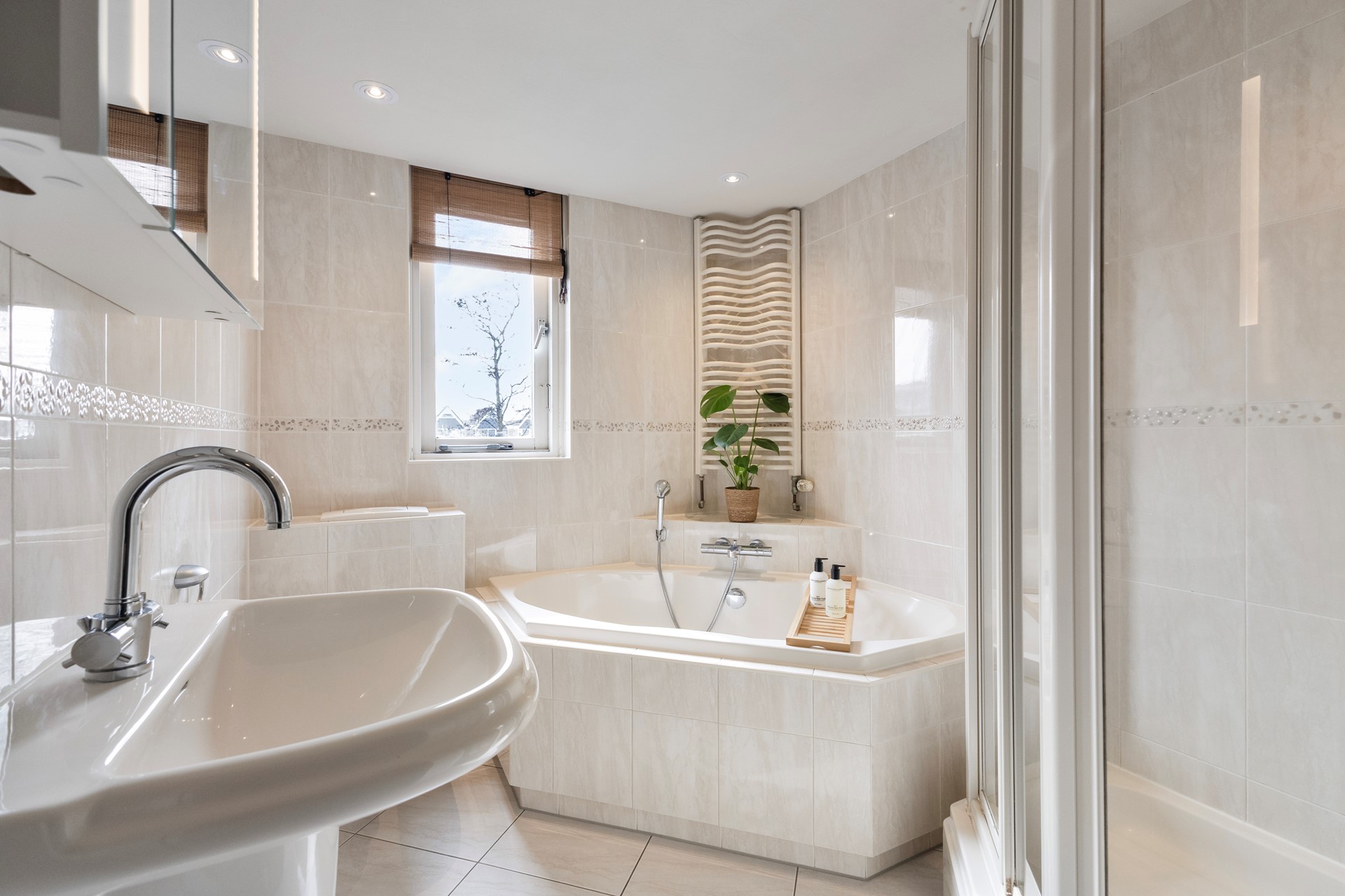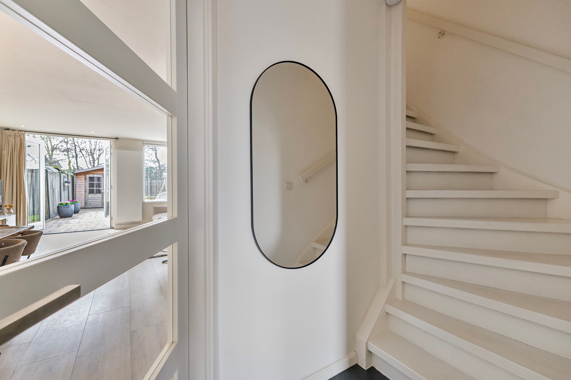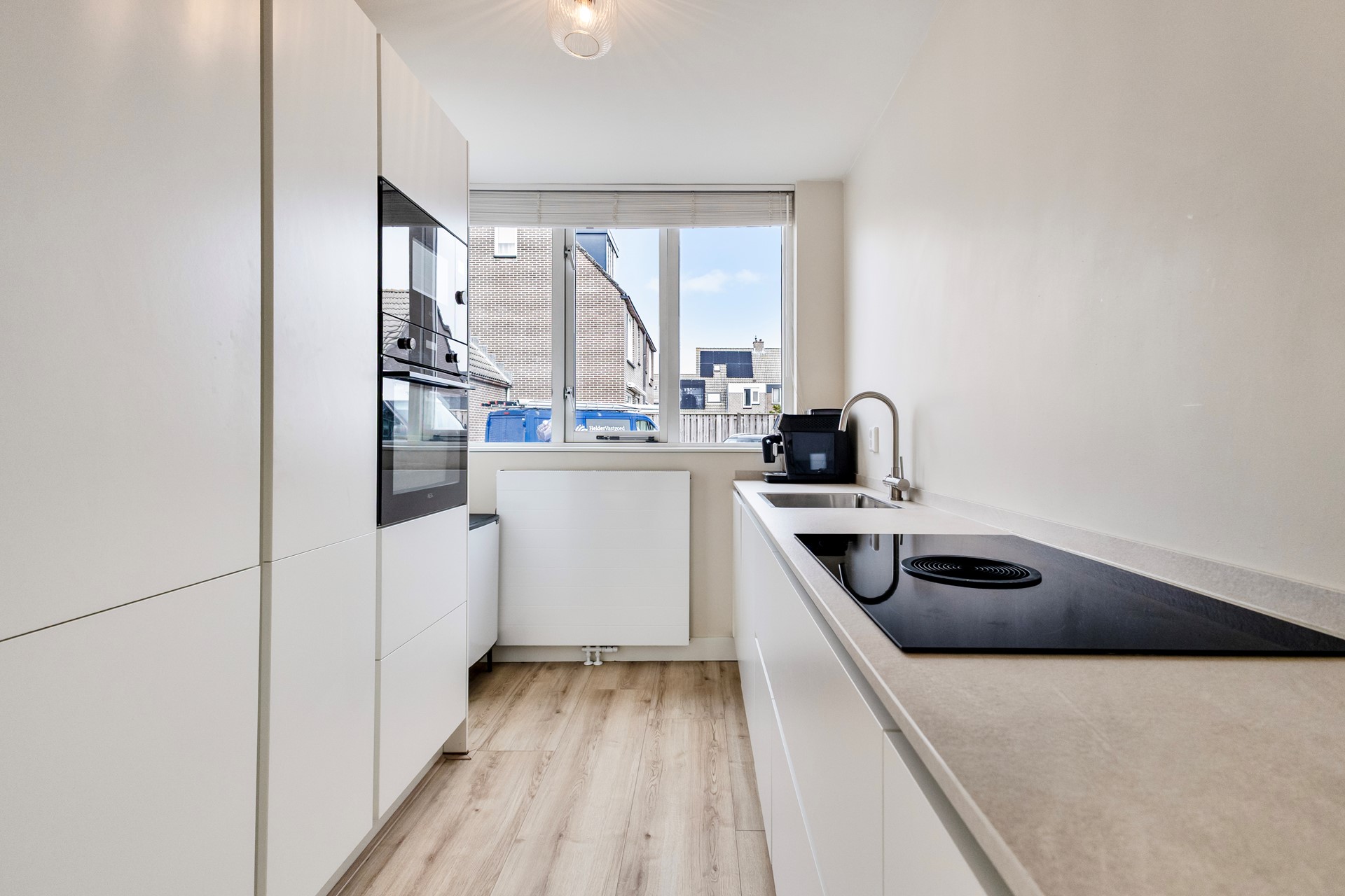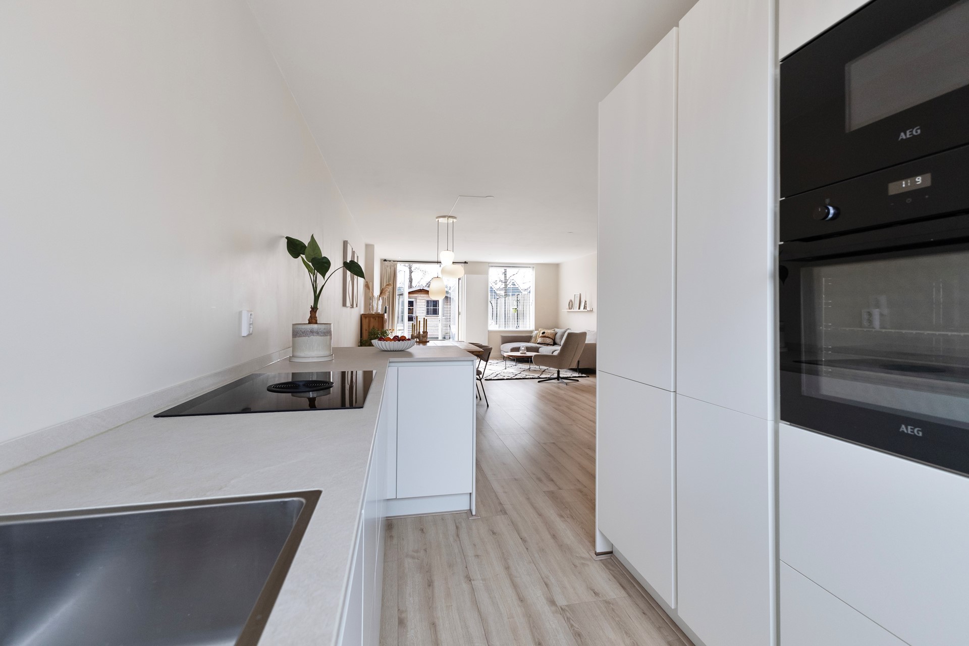 Binnen word je direct verrast door de uitgebouwde woonkamer (circa 2,5 meter), die dankzij de strakke afwerking met gestucte wanden en plafonds een moderne en verzorgde uitstraling heeft. De recent vernieuwde kozijnen (inclusief glas) op de begane grond dragen niet alleen bij aan het comfort, maar ook aan de energiezuinigheid. De openslaande tuindeuren vormen een mooie verbinding met de tuin en versterken het lichte karakter van de woning. De keuken is een echte blikvanger en van alle gemakken voorzien. Het stijlvolle keramiek werkblad, de Bora inductiekookplaat, kokend waterkraan, vaatwasser, magnetron en oven maken dit een ideale plek voor de echte kookliefhebbers .