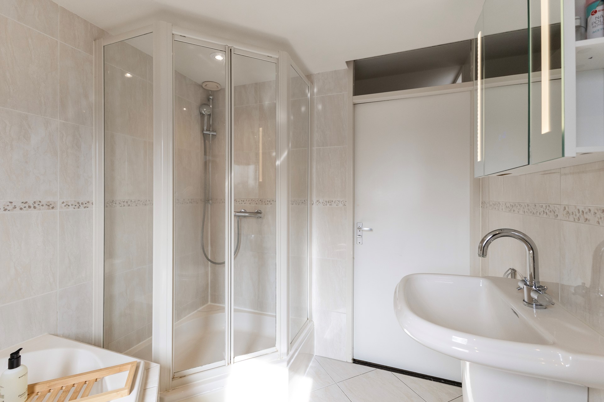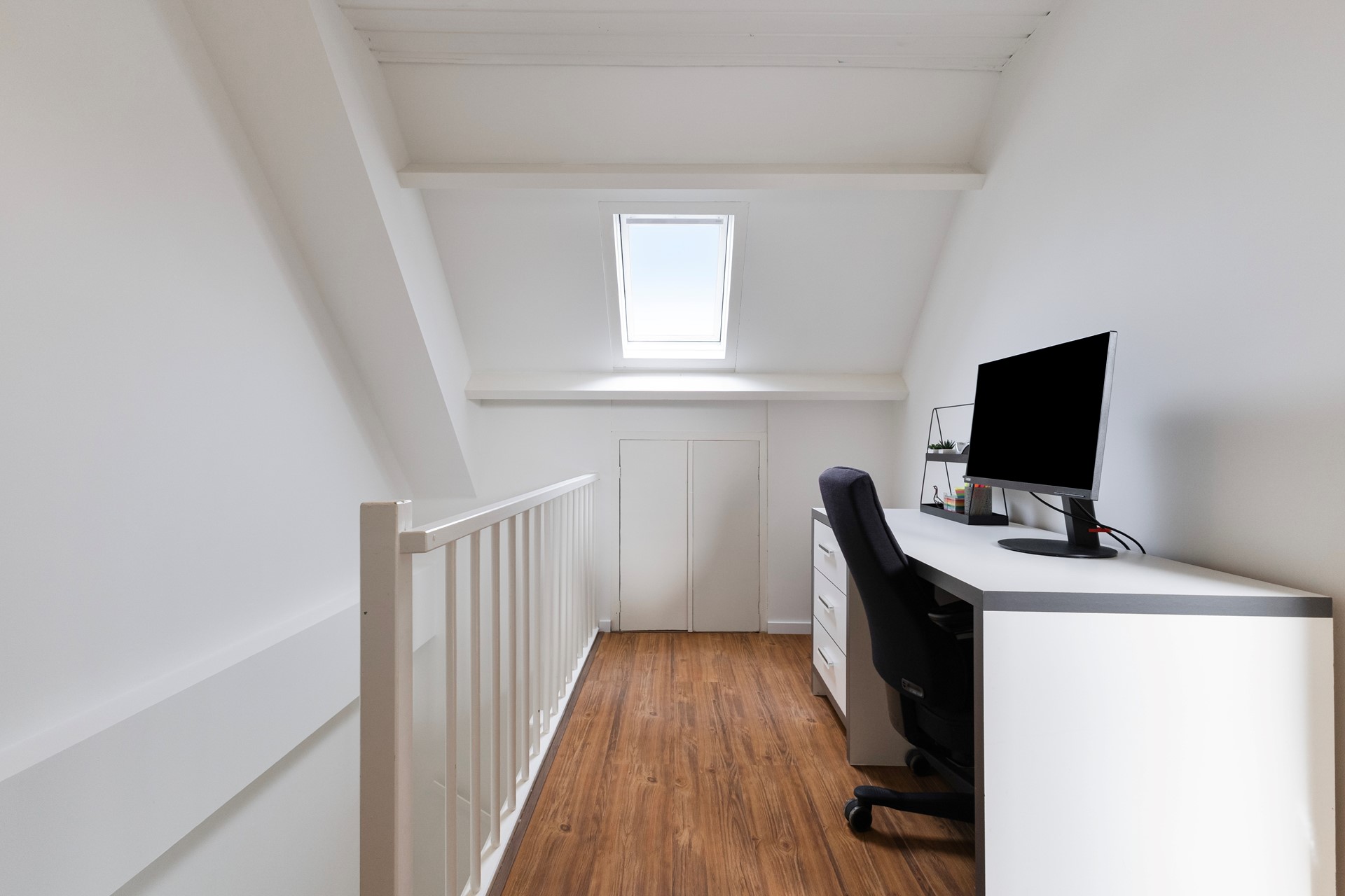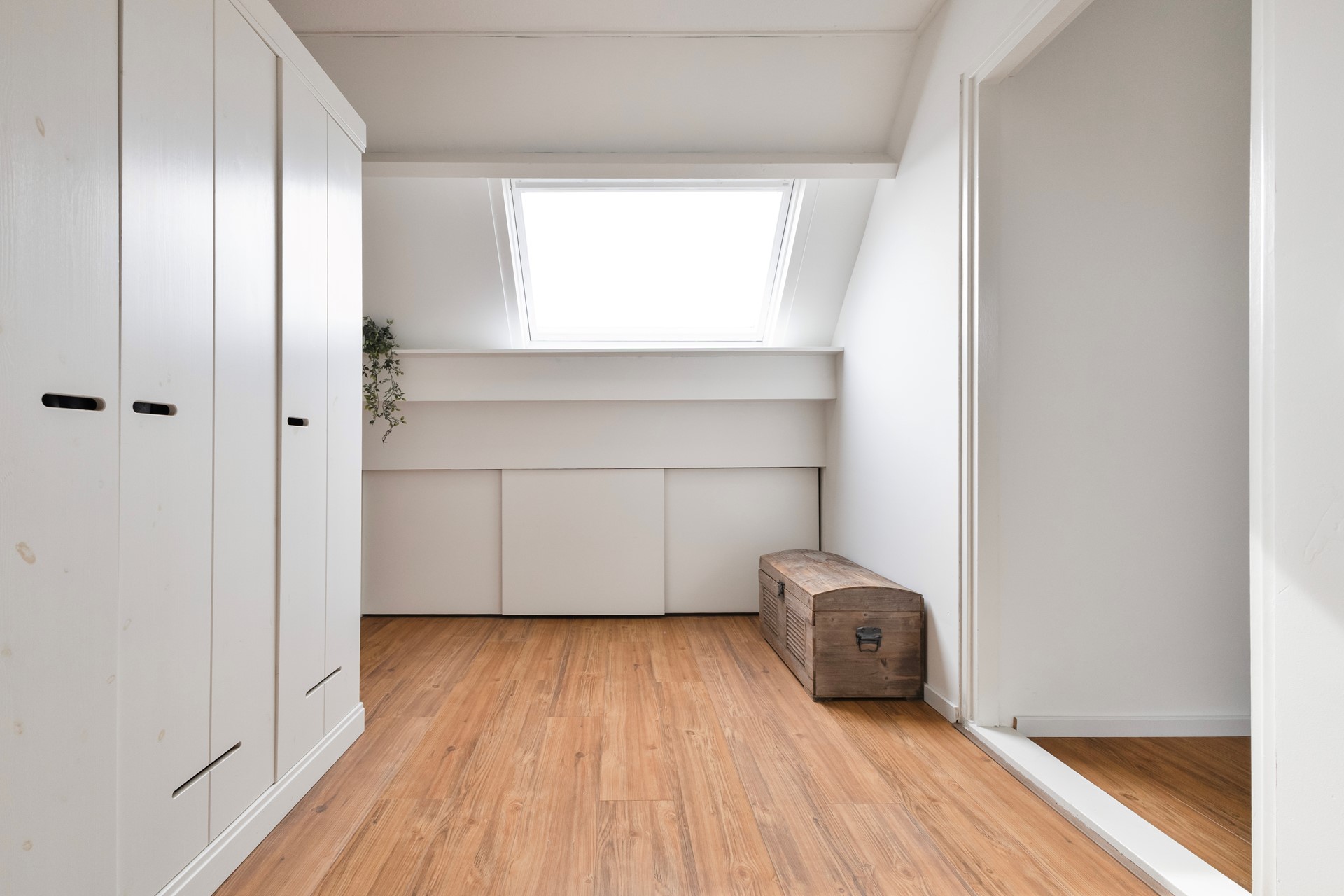 Op de eerste verdieping ligt een nette, doorlopende laminaatvloer en bevinden zich drie goed bemeten slaapkamers. De volledig betegelde badkamer is volledig uitgevoerd met vloerverwarming, een ligbad, douche, tweede toilet en een openslaand raam voor natuurlijke ventilatie. De tweede verdieping biedt ook een verrassende ruimte met een royale voorzolder, voorzien van praktische bergruimte achter knieschotten en een aparte berg- witgoedkast. Vanaf de voorzolder kom je met een vlizotrap op een extra bergvliering. Naast alle praktische bergruimte biedt de tweede verdieping ook nog een ruime vierde slaapkamer.