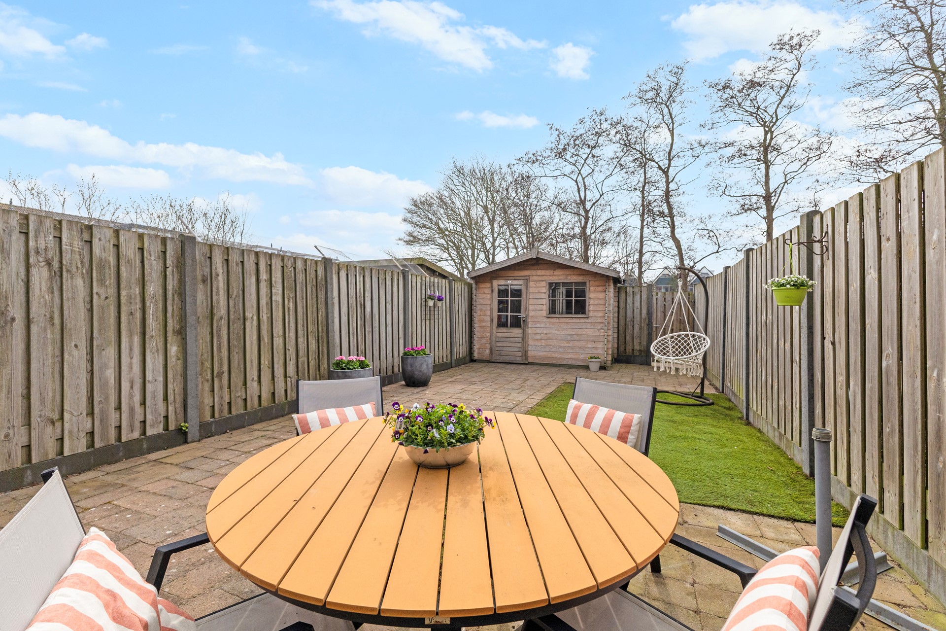 De woning, gelegen op 134 m² eigen grond, beschikt over een zonnige achtertuin op het zuiden zonder directe achterburen en parkeren doe je direct voor de deur. Hier ervaar je rust en vrijheid, terwijl je via de achterom zo het fietspad op loopt. Achter de woning bevindt zich momenteel een tijdelijke parkeervoorziening, die in de toekomst wordt omgetoverd tot een fraai aangelegde speelweide, een prachtige toevoeging aan de leefomgeving. In de tuin vind je daarnaast een praktische houten berging.